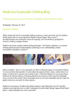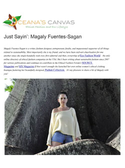 Oceana Lott of Oceana’s Canvas features Pashen Collection Founder/Designer for the first edition of her new series Just Sayin’, which aims to put the spotlight those who drive the eco fashion industry.