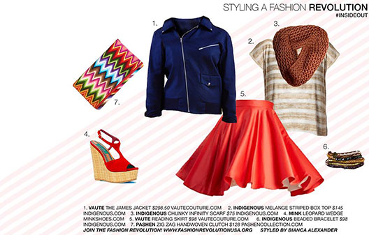 Fashion Revolution Campaign and Conscious Living TV feature Pashen Collection Handwoven Zig Zag Clutch, in Multi in Spring Outfit Look board.